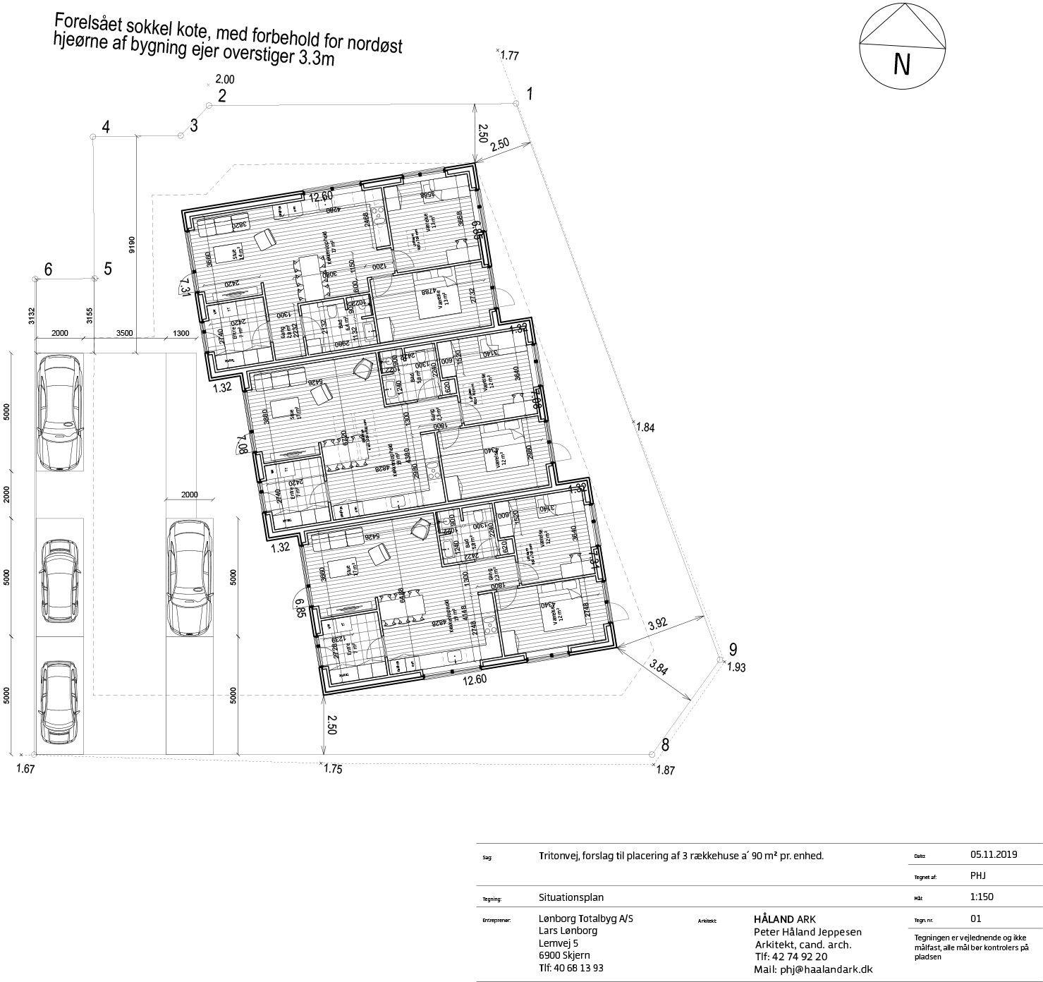 Opførelse af 3 sammenhængende boliger til udlejning, leveret nøglefærdigt.