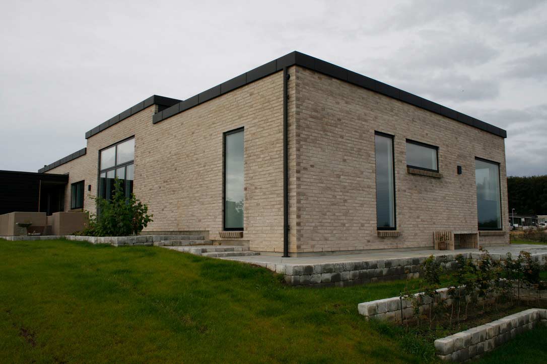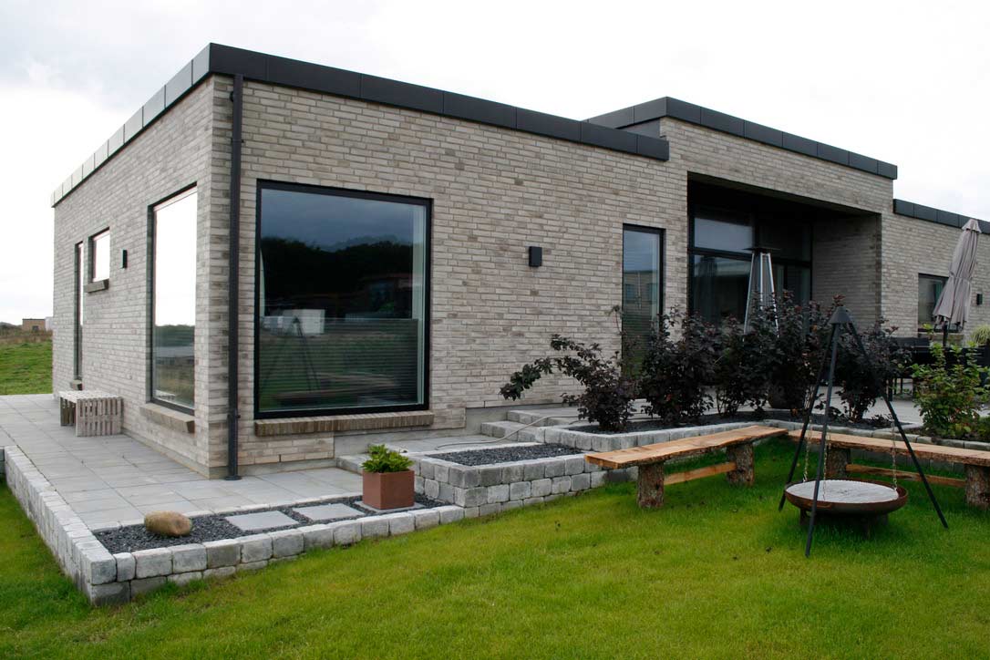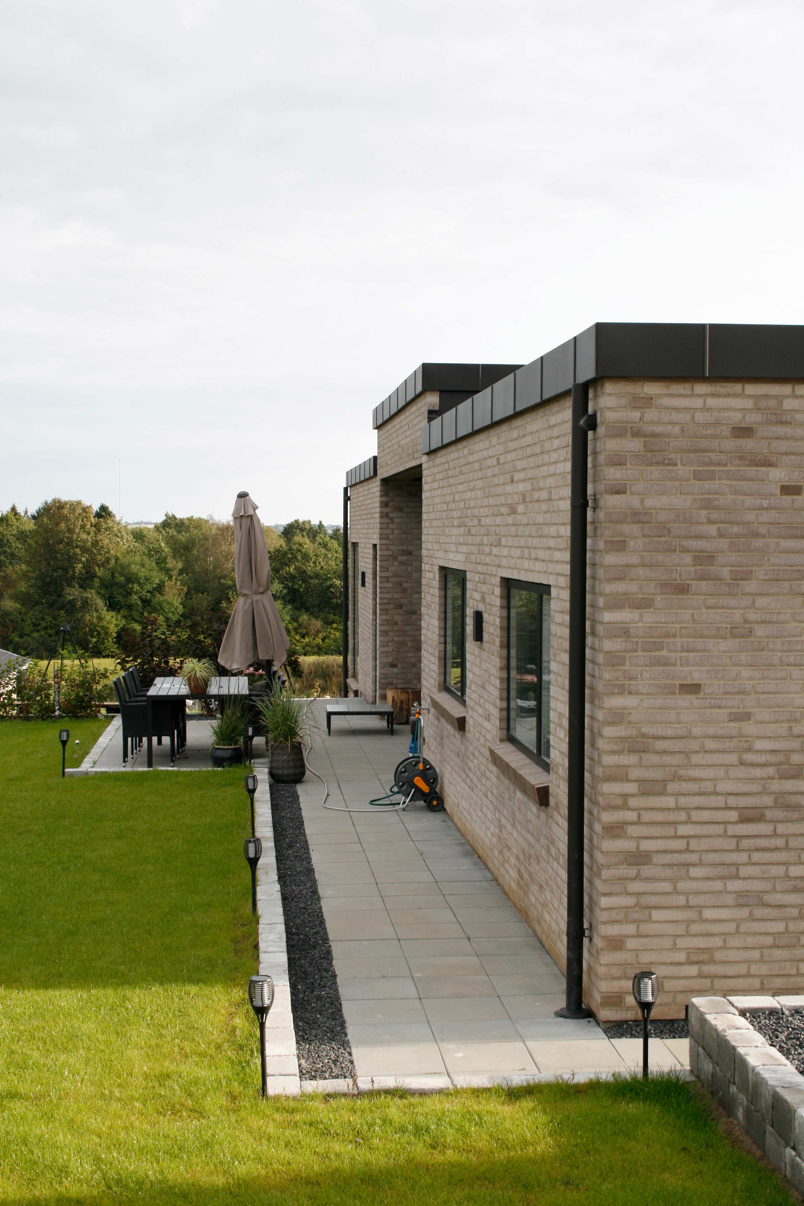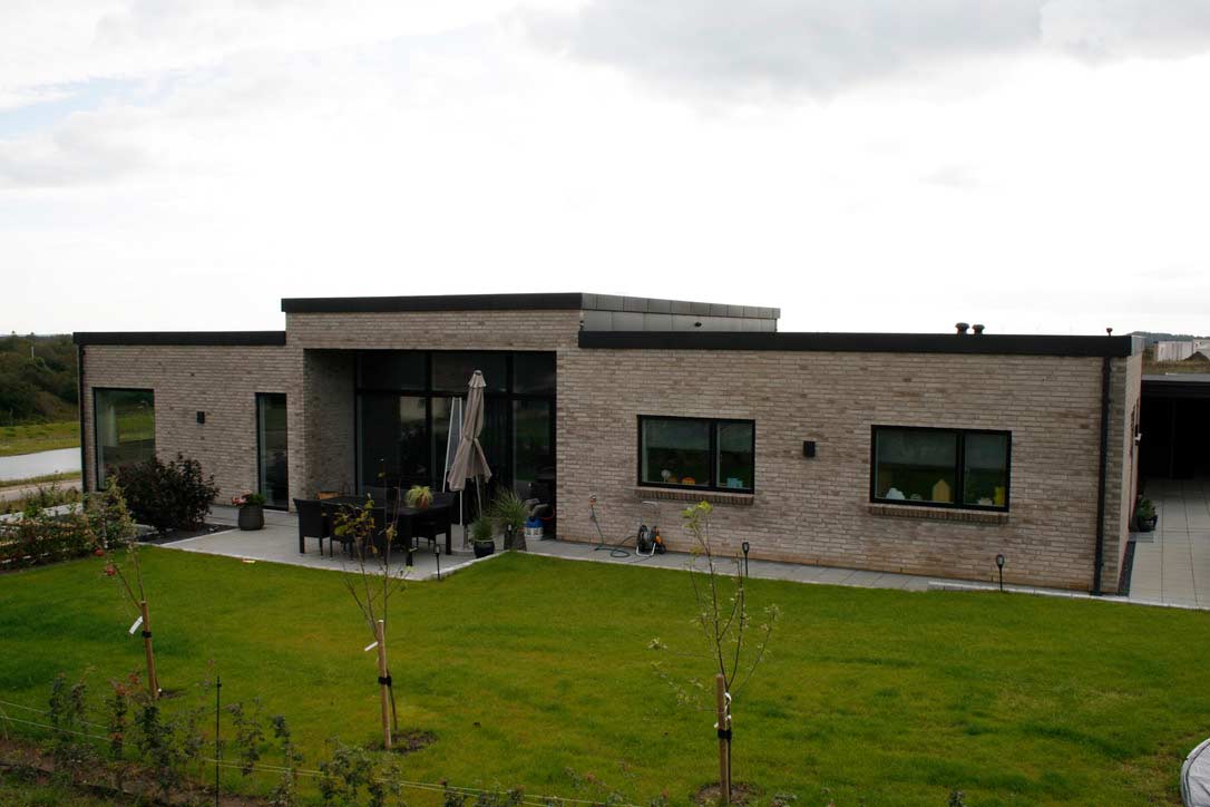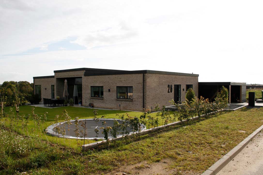Huset er 177 m2 med tilhørende carport og skur.Det centrale rum i huset er køkken og spisestuen, hvor der er højt til loftet og store vinduespartier mod øst og vest. Den skrånende grund mod nord gør, at haven er i forskellige niveauer.